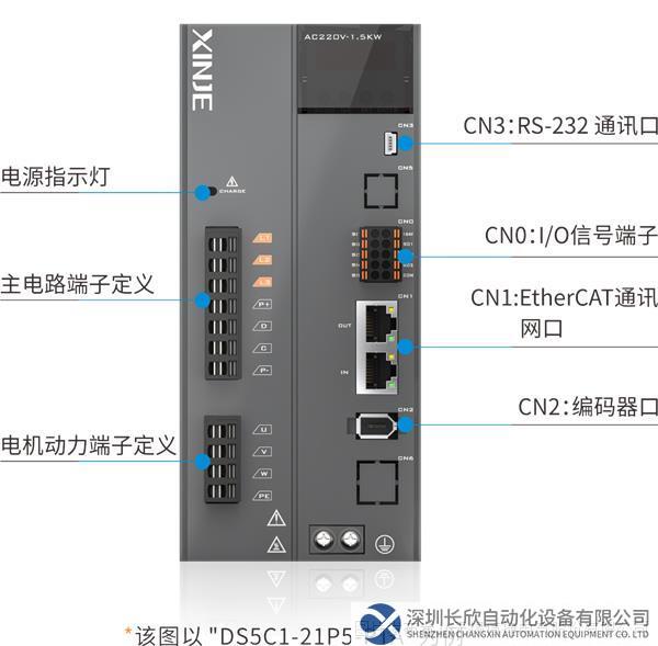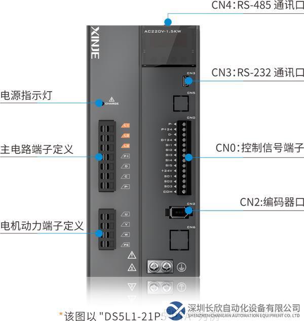 ▍DS5C1/DS5L1系列1kW-3kW,标配动态制动。 多种电机可选 适配MS5/MS6系列电机,支持17位磁编和23位光编。 端口分布