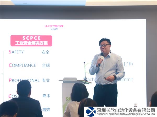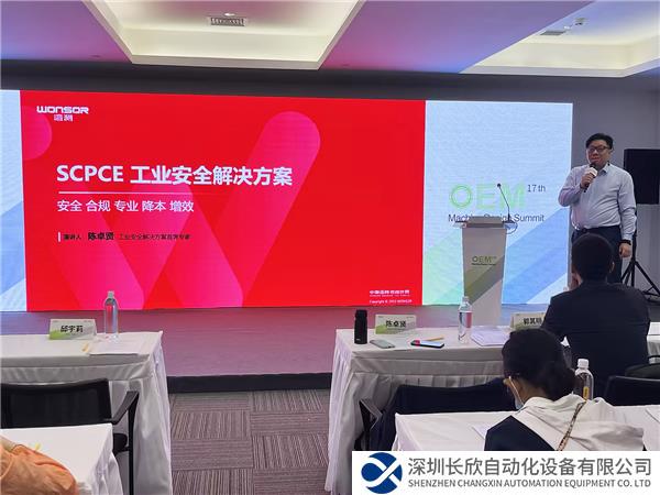 湾测工业安全解决方案首席专家陈卓贤先生作为特邀演讲嘉宾与西门子、罗克韦尔、施耐德、菲尼克斯等国际知名智能制造企业共同出席工博会同期论坛“2023 OEM机械设计技术研讨会”,陈卓贤先生分享了《SCPCE工业安全解决方案如何提高OEM设备商的市场竞争力》的主题演讲。